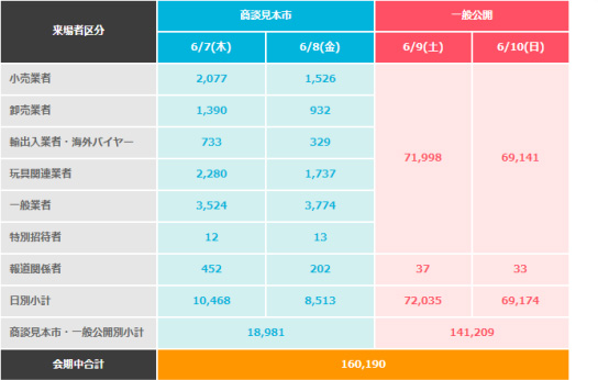 日本東京玩具展,始創(chuàng) 1962 年,由日本玩具協(xié)會主辦的歷史最悠久,規(guī)模最大的專業(yè)玩具展會,截止 2018 年 6 月,該展已成功舉辦 53 屆,每年一屆,本次展會共接待了來自全球 27 個國家和地區(qū)的近1000 家參展企業(yè)蒞臨展會,53,856 名專業(yè)買家前來參觀采購,來訪觀眾達 160,190 次,展出面積50000 平方米,同比去年增長 11%;其中境外買家2,838 名,增長21%。